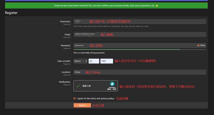 【如果注册时下图中的验证码无法显示】
